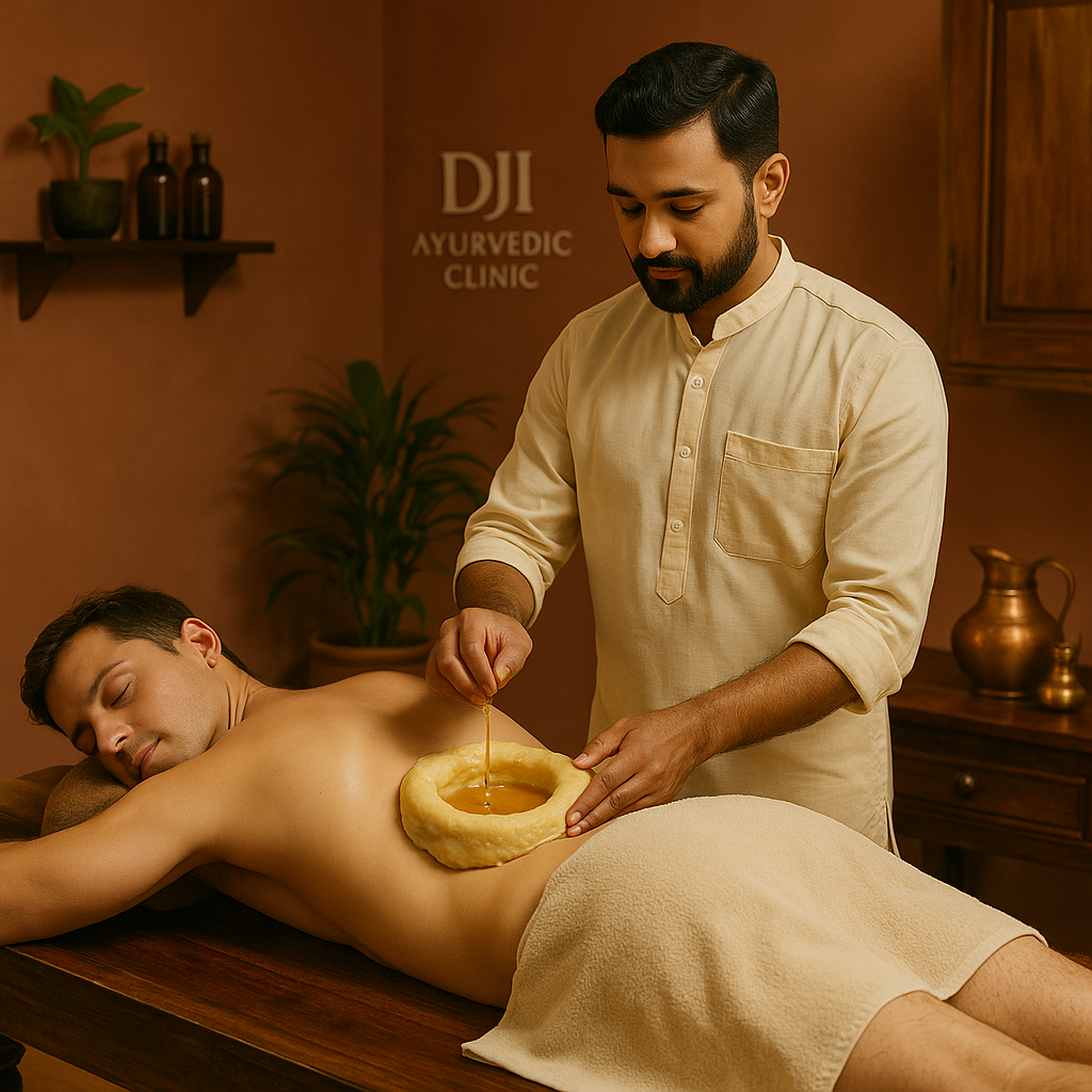 The warm oil remains on the lower back for around 30-45 minutes, during which the patient relaxes while the oil works to ease pain, reduce inflammation, and promote flexibility in the muscles and joints. After the session, the oil is gently removed, leaving the patient feeling rejuvenated and pain-free